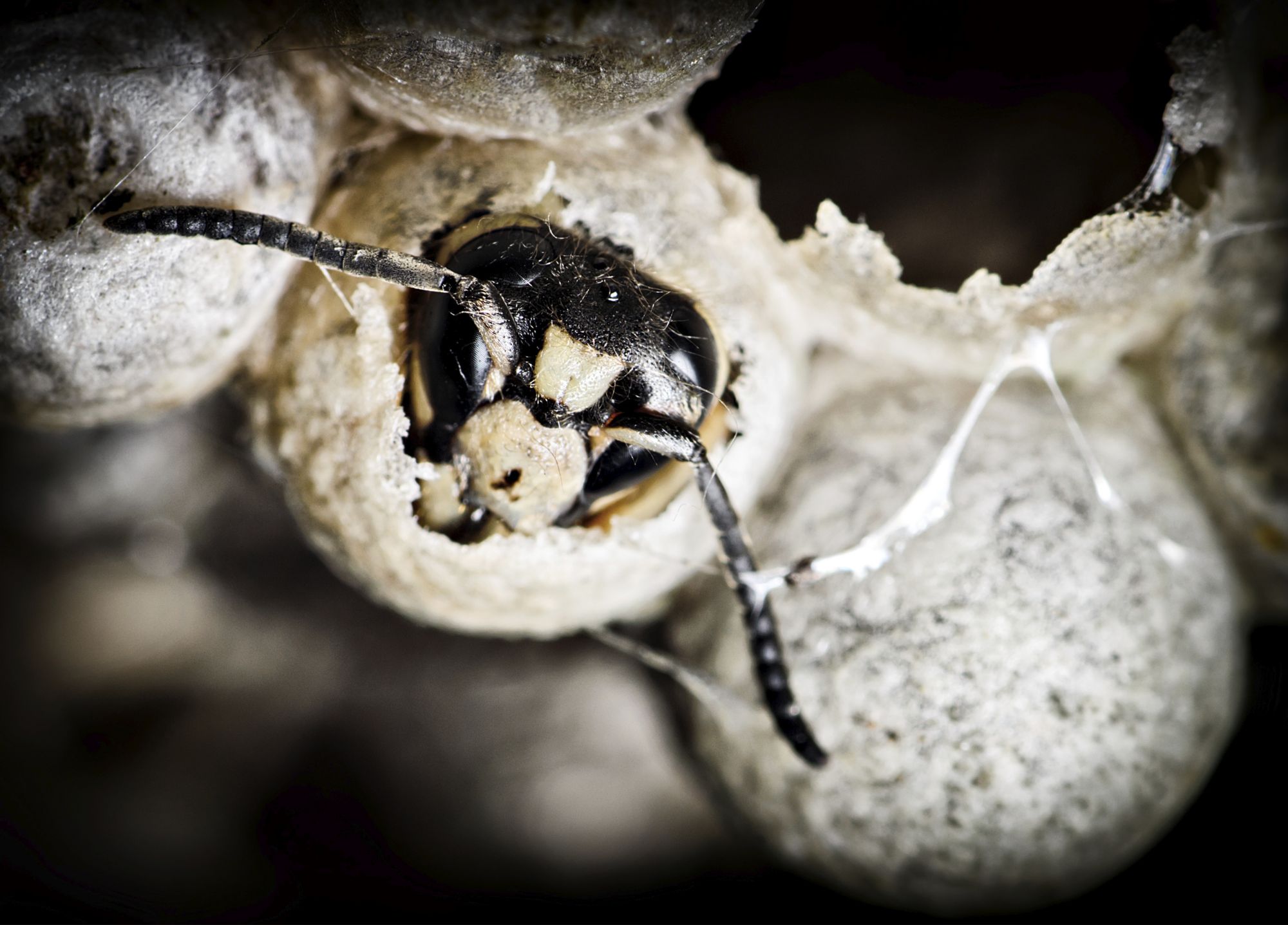 The body of the bald faced hornet is black in color and its face is marked with white. Wear protective clothing and try not to use any lights. The powerful jet spray coats and seals the nest trapping wasps inside and killing on contact other wasps who return and land on the foam-coated nest.