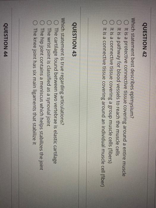 C usually contains a large amount of matrix. The fiber type that gives connective tissue great tensile strength is _____. Which statement best describes connective tissue. A usually contains a large amount of matrix B typically arranged in a single layer of cells C primarily concerned with secretion D usually lines a body cavity 2 Eyebrow hairs are generally shorter than hairs on your head because A they grow much slower B eyebrow follicles are only active for a few months C the vascular supply of the. Which statement best describes connective tissue. Which statement best describes connective tissue A Connective tissue cells do from BIOLOGY 201 at Pueblo Community College. A usually contains a large amount of matrix B always arranged in a single layer of cells C primarily concerned with. Which statement best describes connective tissue. Usually contains a large amount of matrix 12 Matrix is composed of fibers and ground substance 13 Cell types likely to be seen in areolar connective tissue include all except chondrocytes 14 Which tissue type arises from all three embryonic germ layers.