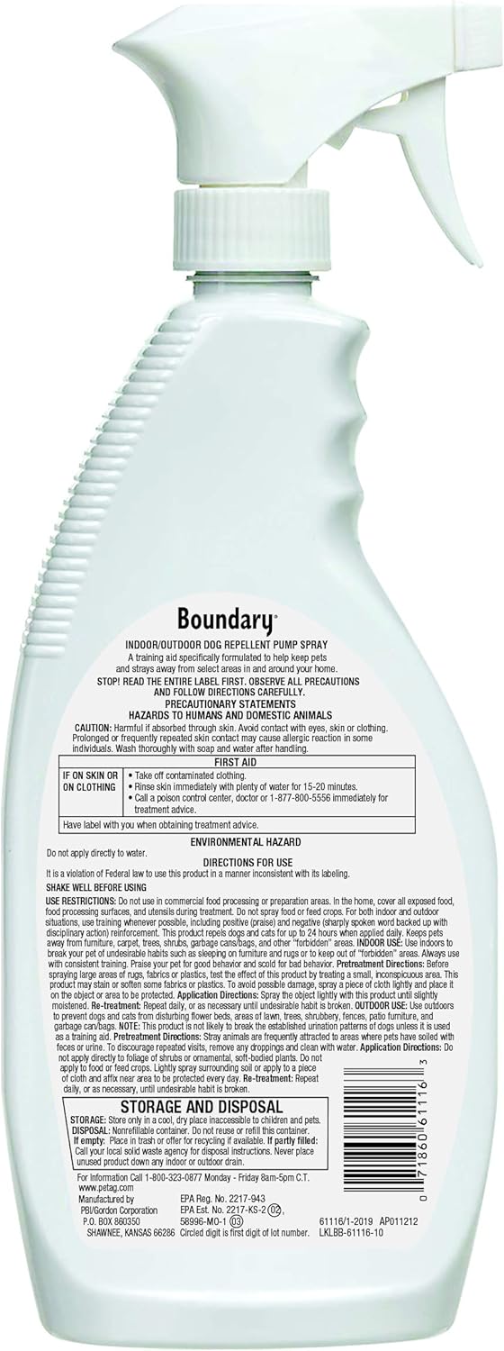 Boundary Indoor Outdoor Dog Repellent Pump Spray will repel dogs for up to 24 hours when applied daily. Lambert Kay Boundary Dog Repellent Spray 22 oz. A boundary wire system.