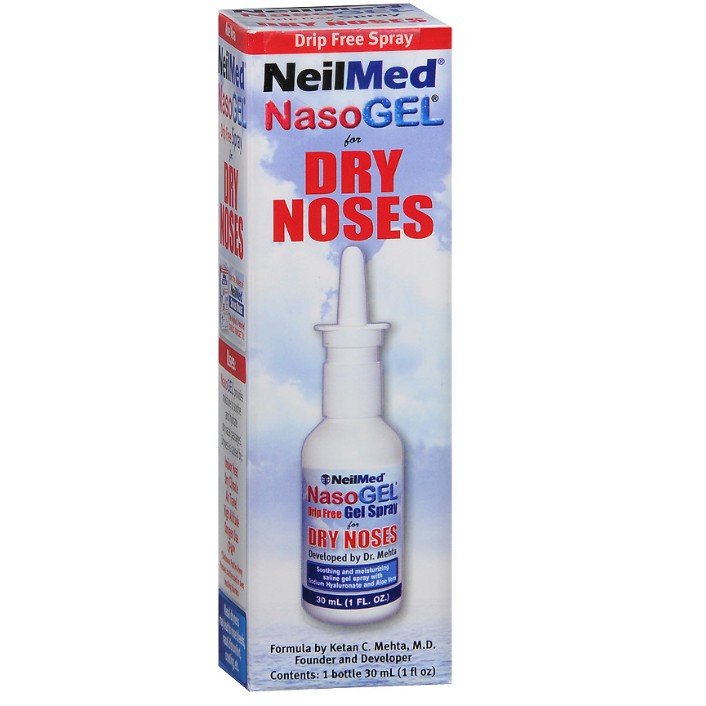 NasoGEL provides moisture to hydrate and lubricate dry and irritated nasal passages caused by dry climate and indoor heat. NeilMed NasoGel Drip Free Gel Spray Details. Call Toll Free in USA Canada only. NeilMed NasoGel for Dry Noses Drip Free Gel Spray - Soothing Moisturizing Saline Gel Spray with Sodium Hyalurate Aloe Vera - Reduce Nasal Dryness - 30mL 1 fl oz NASAL GEL SPRAY NasoGel Spray is a drug-free saline based water soluble nasal gel spray formulated with sodium hyaluronate to provide nasal moisture. 1 877 477 8633 TEL. NeilMed NasoGel Drip Free Gel Spray. This product is typically dispatched within 1-3 working days from date of order when using our standard delivery or 48 Hour Tracked and Signed service.