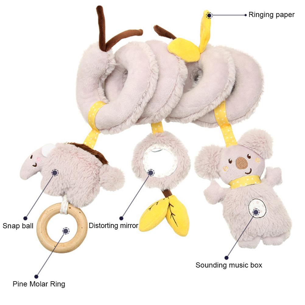 Peter Rabbit Activity Spiral Toy. Baby Activity Spiral Car seat toys Duck theme Easily wraps around car seat handles and most strollers and cribs Made of soft and safe cotton plush BPA free Encouraging baby to reach pull and squeeze which helps strengthen developing muscles. The bee makes crinkly noises when you grab on it the cowpig is a plush stuffed toy the two rings clink together making a fun sound when you grasp on it and the mirror is cute for babys reflection. Baby Rattles Crib Pram Hanging Soft Handbell Stroller Car Seat Pushchair Toys. Activity Spiral Stroller Car Seat Lathe Hanging Bed Around Toys Baby Rattles Toy for Prams and Pushchairs Suitable from 0 to 6 Months Boys and Girls. BEDTIME bed linen duvet cover playpen mat fleece blankets cotton blanket. The friendly animals smiling back will encourage focus.