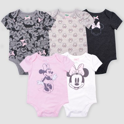 SHIPS IN 1-3 DAYS. Baby Girls 5pk Disney Minnie Mouse Short Sleeve Bodysuits - GrayPinkWhite. January 26 2018.